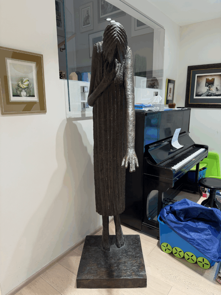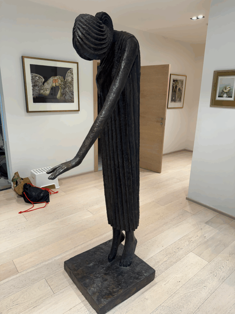 Dovoluji si nabídnout výjimečné dílo mistra Olbrama Zoubka – Zastavení, symbolickou plastiku ženy ve smutku, vytvořenou v roce 1993 jako Pomník obětem komunistické zvůle v Klatovech.